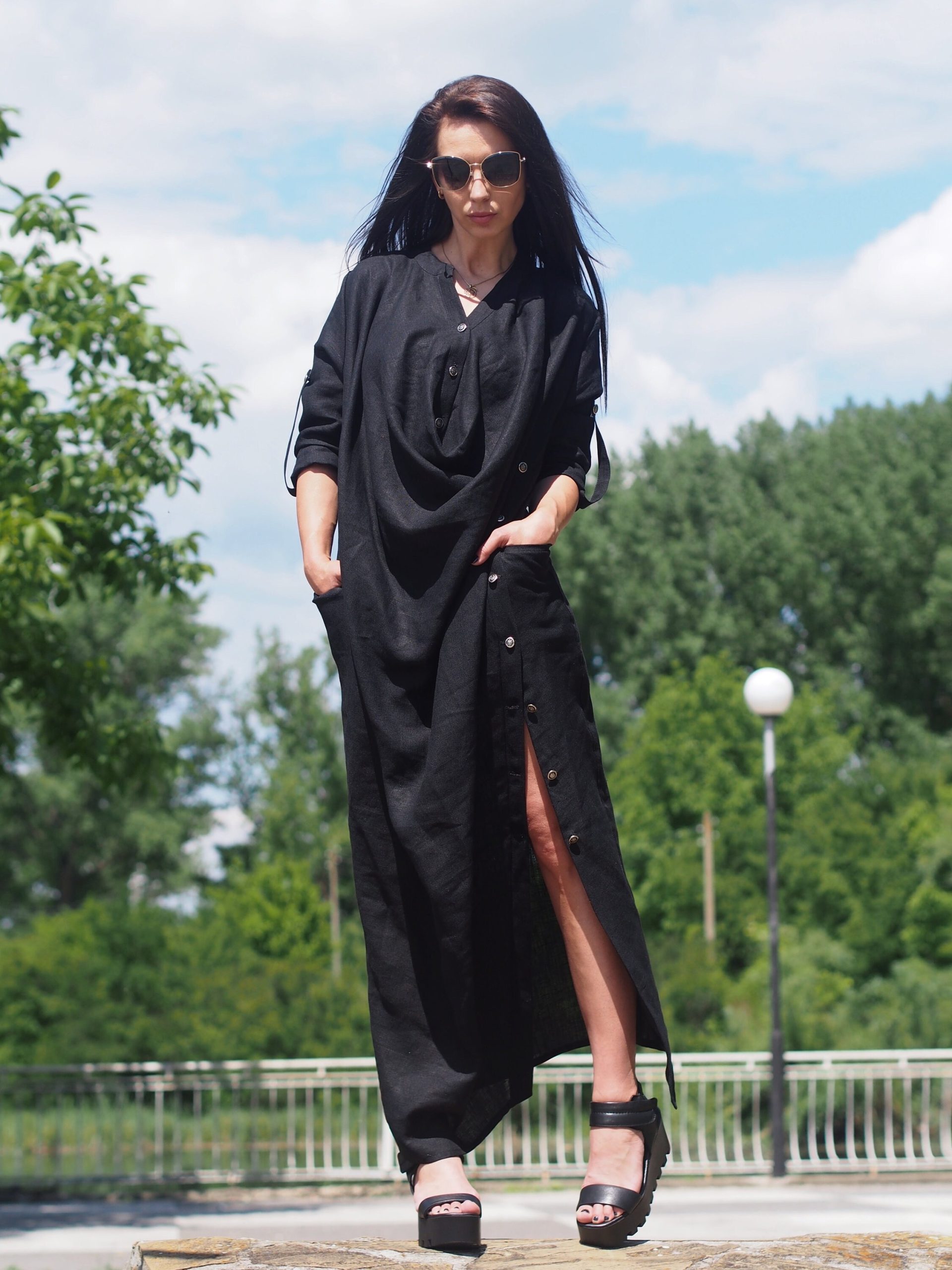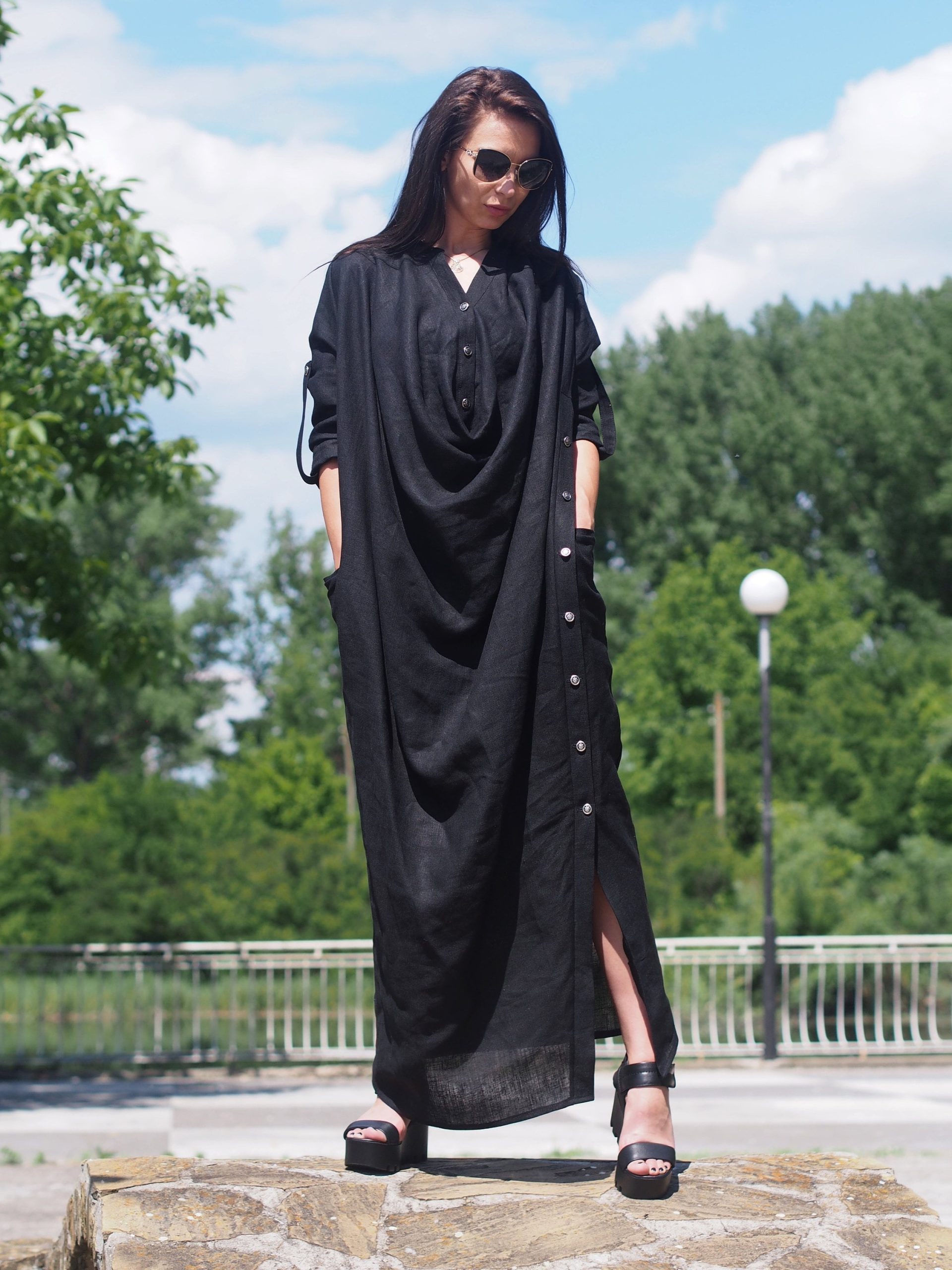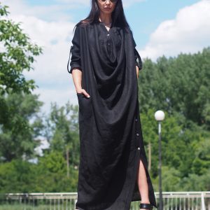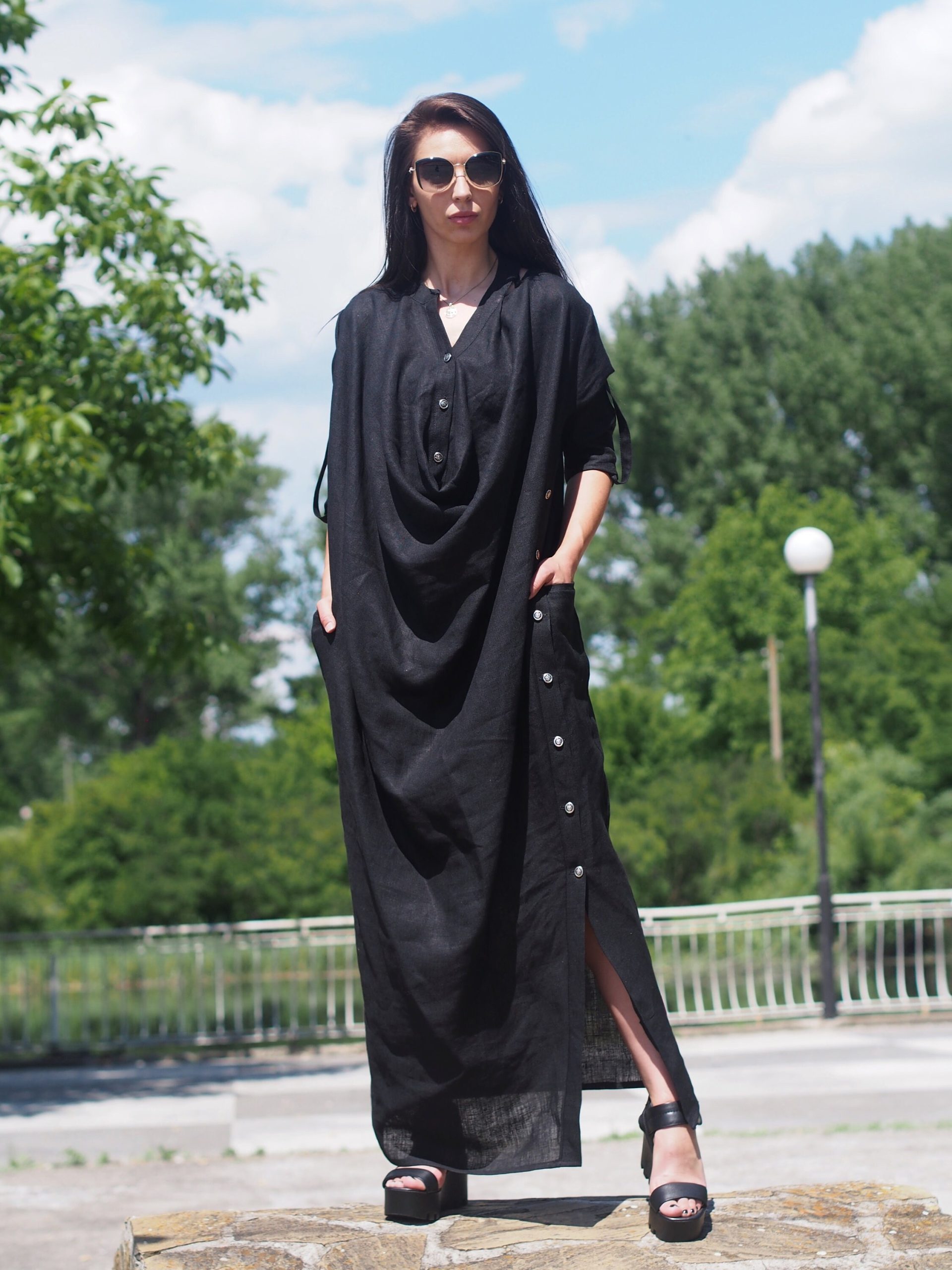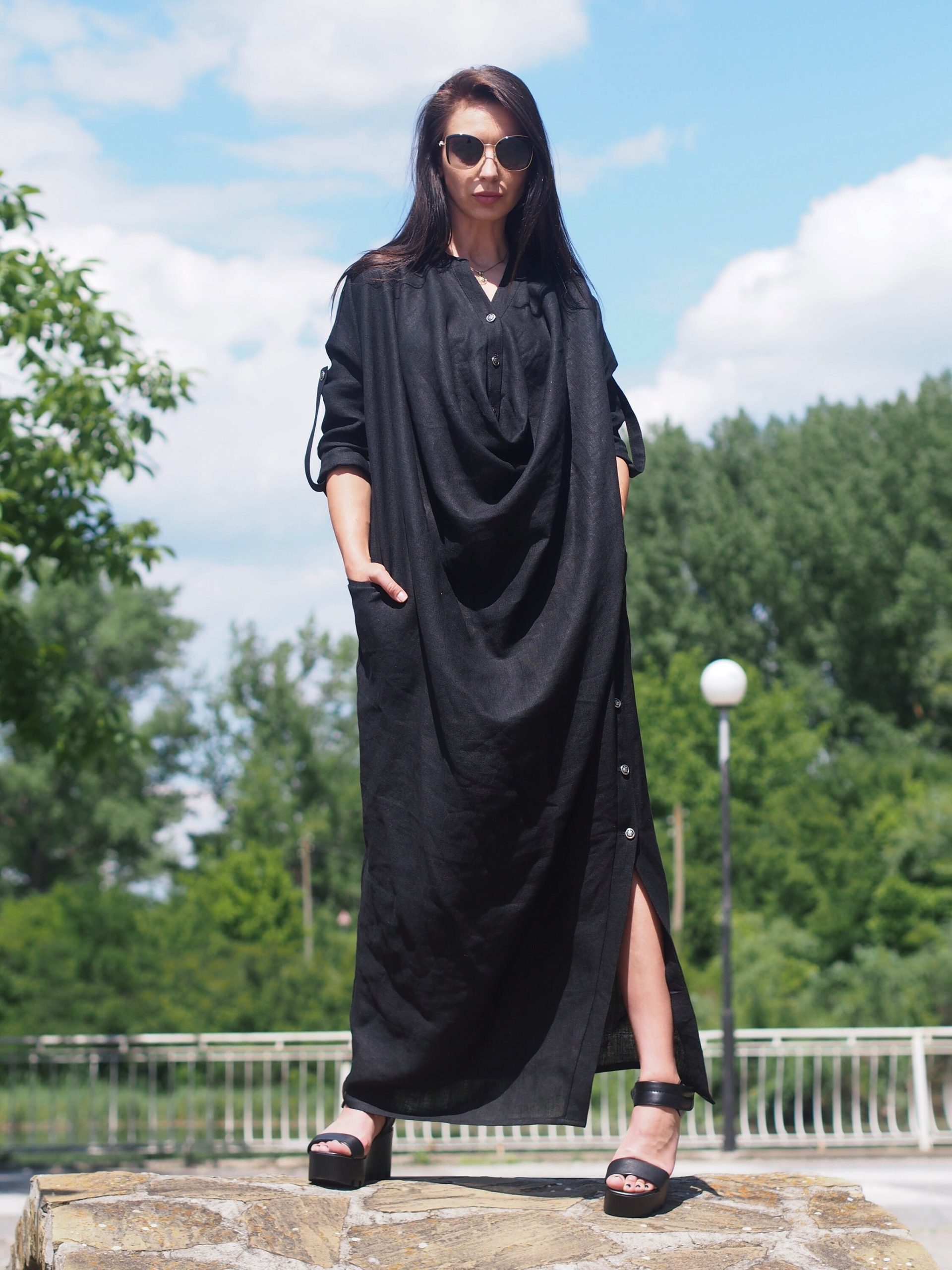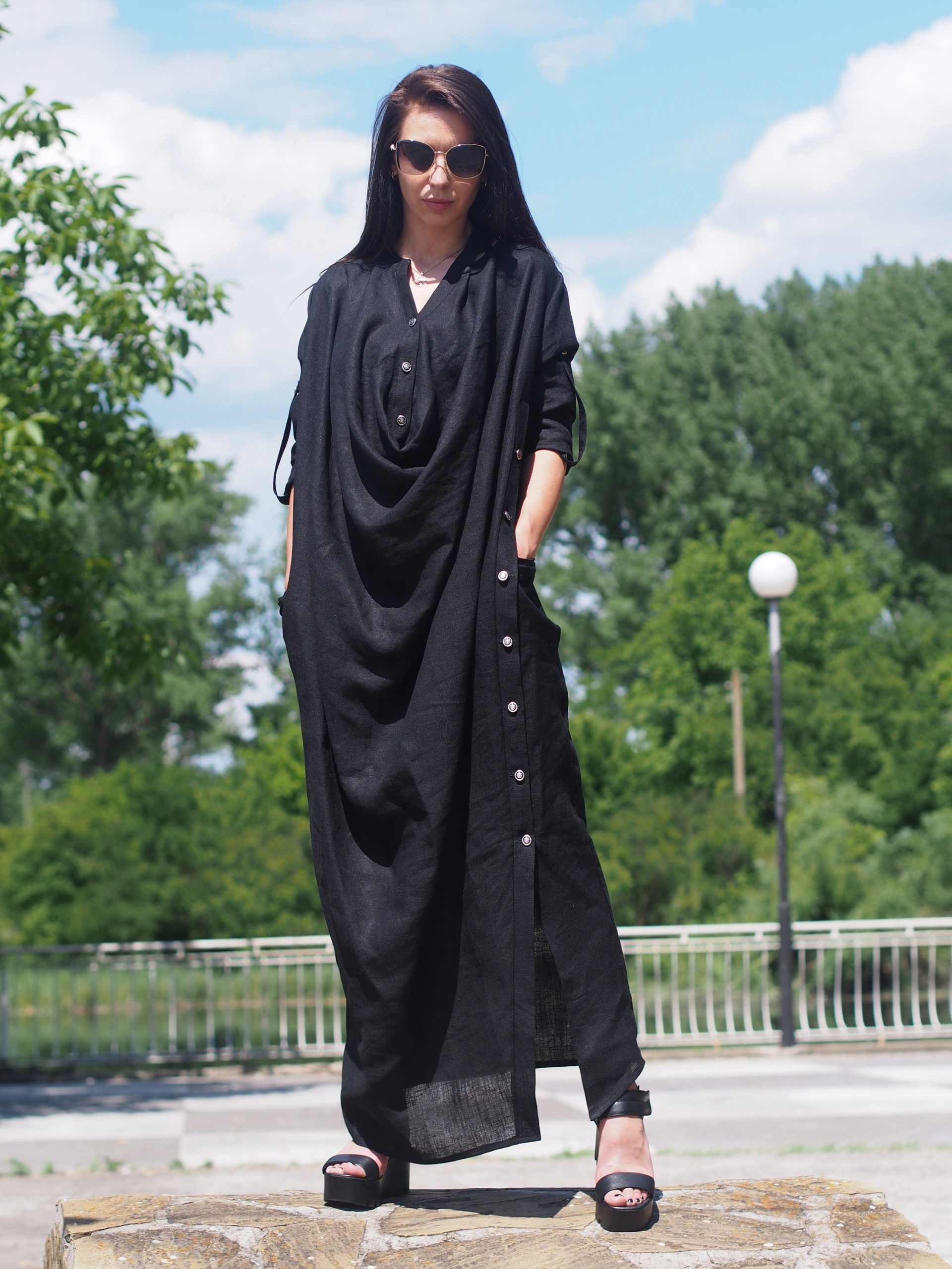 Women maxi dress, Long maxi dress,Linen maxi dress,Summer maxi dress, Black long linen dress,Pus size women dress,Women linen dress