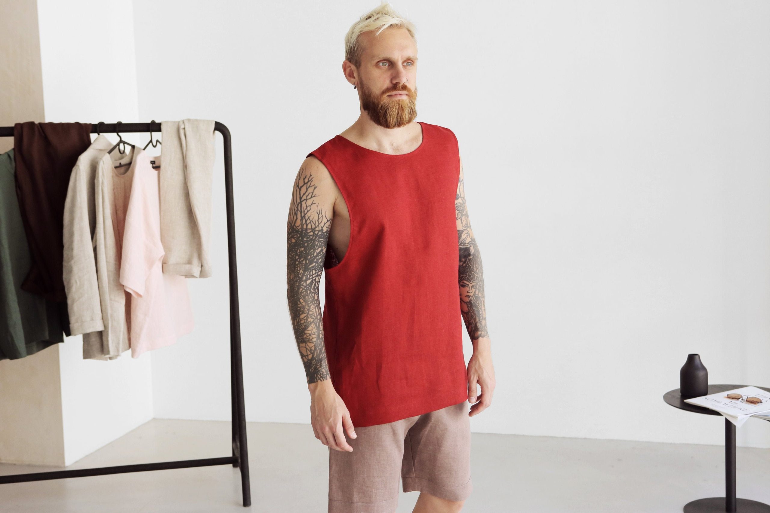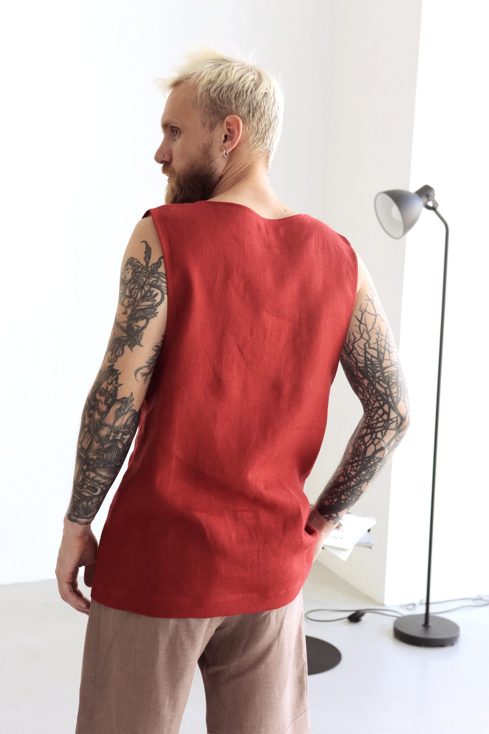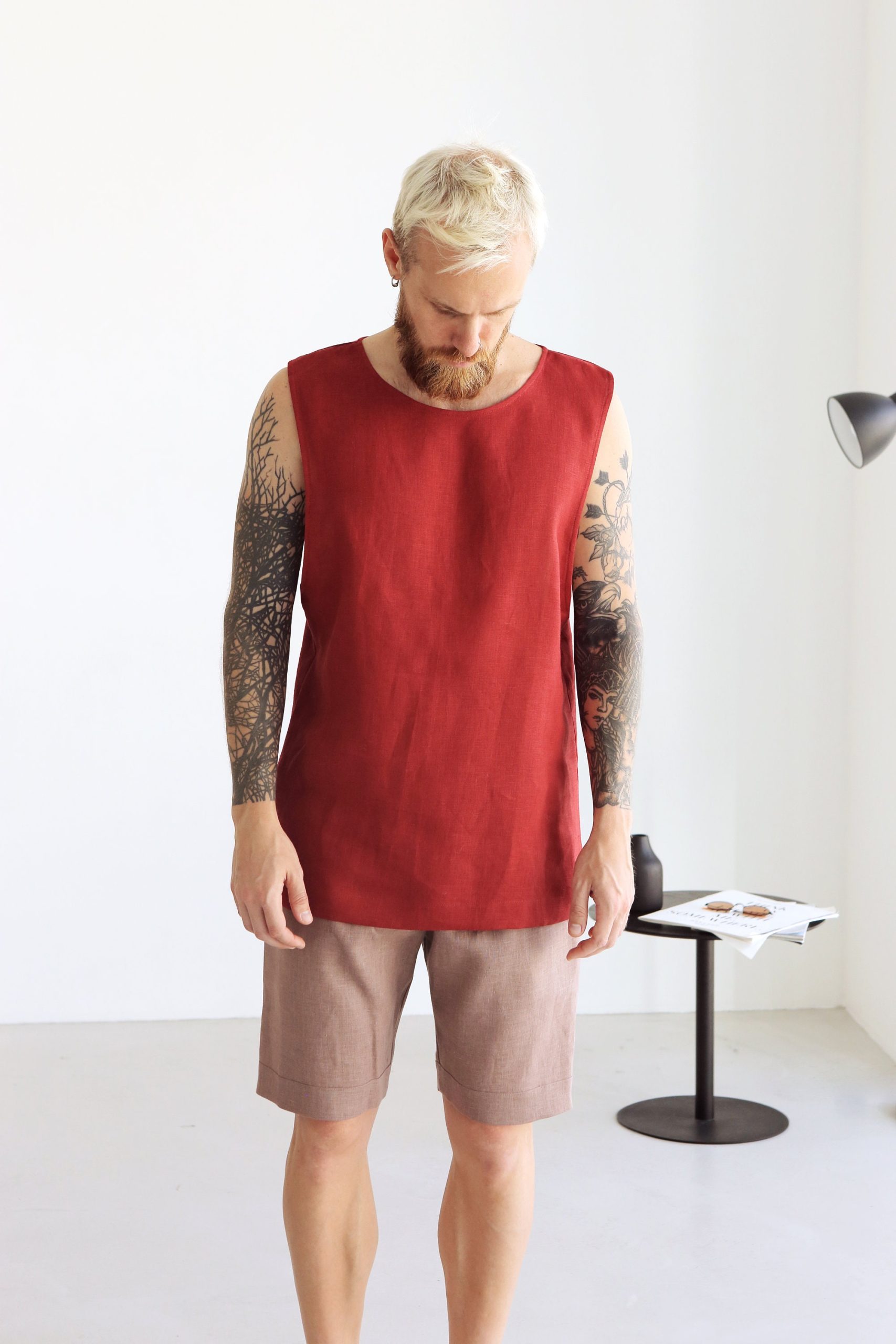 Mens Sleeveless Linen T Shirt Singlet Summer For